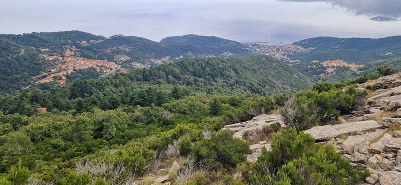 am sonntag haben wir die wanderschuhe montiert; mit dem fiesta nach san piero (220 müm) und weiter per pedes am unebensten fussballfeld vorbei bis hinauf zur pietra murata (548 müm). dort erwartete uns eine grandiose aussicht auf spaggia di secchetto, das meer und sogar die umrisse von korsika. danach alles wieder runter. alles in allem eine tolle rundwanderg (nr. 26 des rother wanderführers)... am abend machen wir wieder gemütlich: yazzee, apero und nachtessen auf unserem balkon)..