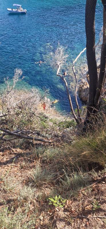 am freitag machten wir uns auf für eine längere wanderung. von pomonte auf den colle della grottaccia. rother route 29, aber in der anderen richtung. heisst: am anfang 'steil am seil' den hang hoch, später mit etwas schatten die flanke runter. gesehen haben wir einiges an insekten, aussichten aufs meer, hinterteile von reen und wildschweinen sowie capriles (googelt mal, so wie wir auch...). nach yazzee gibt's später selbst gekaufte ravioli aus der tube (mami chond denn scho druus)...