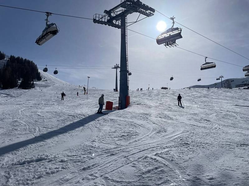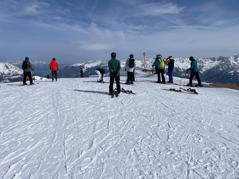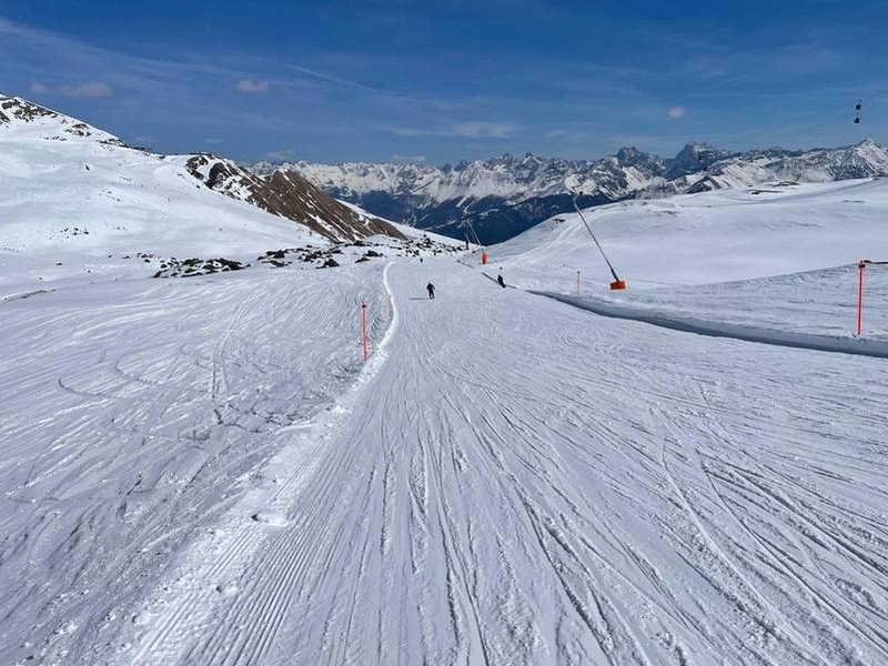 tag 2: zwei race-snöbers und zwei pensi-carvers weiterhin im einsatz in serfaus. die wetter-app hatte heute offenbar frei. angekündigt war irgendwas zwischen grau und naja – bekommen haben wir sonnenschein, perfekte sicht und traumhafte pisten. also keine diskussion: rauf auf den berg. ado und edith legten am morgen noch ein paar respektable pensi-carving schwünge hin. allerdings meldeten sich relativ bald die beiden wichtigsten sensor-systeme: knie und apero-uhr. die analyse fiel eindeutig aus – strategischer rückzug ins apero. jemand musste schliesslich schon mal den tisch reservieren und die qualität von bier und wein prüfen. verantwortungsvoller einsatz!
