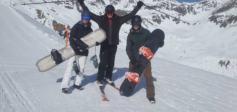 tag1: voll motiviert gings heute auf die pisten von servaus. wetter vom feinsten, sonnenschein pur und die gute laune präsent. racee1 (sandee) haderte noch ein bisschen mit ihrem testboard, aber schlussendlich kurvte sie uns stinkfrech um die ohren. ein super tag, den wir natürlich mit einem üppigen apéro in der serfausmeile abrundeten. nun warten wir auf den WEICHEN naturreis, he he. umgarnt mit feinem rindsstroganoff mmh